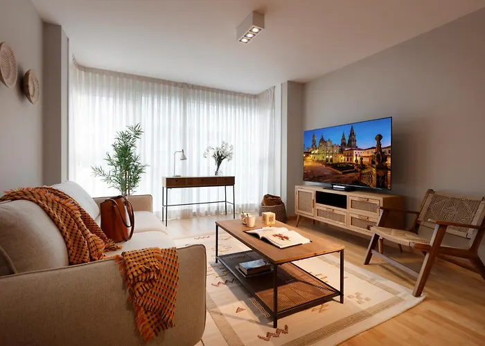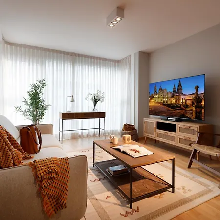 Vita Homes By Upper Luxury Housing 圣地亚哥-德孔波斯特拉俯瞰着城市,离圣佩拉约修道院和教堂开车约需5分钟。 公寓设有配备休息区 和纯平电视的客房,那里还有设施齐全的厨房。